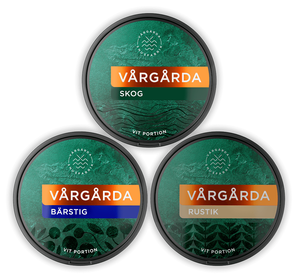 Rustik är en smakrik gårdstobak, för dig som söker en klassisk smak men ändå vill ha en unik produkt. Klassisk Vit har en frisk smak med inslag av bergamott, citronmeliss och svenska örter. Vårgårda är en hyllning till skandinavisk skönhet, hantverk och natur.